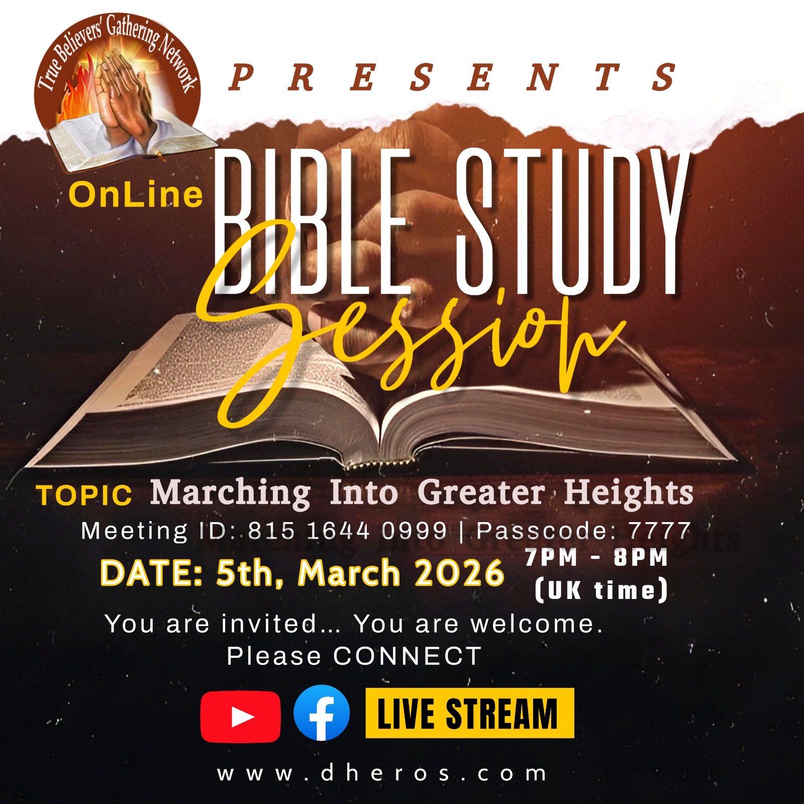 TBGN (True Believers Gathering Network – A bible study platform) UK time: 7pm to 8pm. Please Join Zoom Meeting